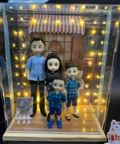 – Miêu tả sản phẩm: Tượng chibi quà tặng kỉ niệm gia đình đầy ý nghĩa, độc đáo. Đây là bộ tượng chibi 2D làm theo ảnh thật, gia đình bốn người gồm bố, mẹ hai người con đứng cạnh nhau hạnh phúc được làm một cách tỉ mỉ. Tượng có đế gỗ giúp tượng đứng vững, kèm nắp hộp mica phù hợp để làm quà tặng, quà lưu niệm.
