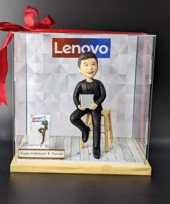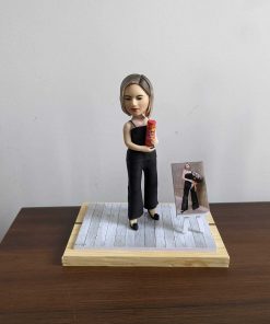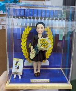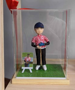 Đây là tượng doll vẻ tả thực rất thích hợp để làm quà lưu niệm cho người nước ngoài 2023. Anh ta có vẻ ngoài lịch lãm và trang trọng trong bộ vest màu xanh. Vest của anh ta có kiểu dáng gọn gàng và vừa vặn trên người, tôn lên vóc dáng thon thả của anh ta. Vải vest có vẻ cao cấp và mịn màng, tạo nên vẻ sang trọng và đẳng cấp cho anh ta. Tượng đượ dựng trên chiếc đế nhựa giả gỗ phía sau là background và cả khung mica trong suốt.